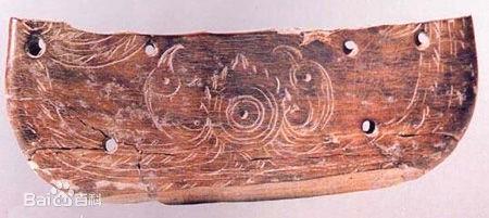 浙江缺姚河姆渡遗址第四文化层出土出土,属于新石器时代河姆渡文化,长16.6厘米、残宽5.9厘米、厚1.2厘米。反面用阳线雕镂出一组图案,核心为一组大小不等的齐心方,外沿刻无炽猛火焰,意味太阳。两侧刻无昂辅弼望的双鸟,面向太阳振翅起飞,成对称形。四周钻无六个小方孔,上四下二,后背制做较粗拙。构图对称协调,线条泼流利,给人以欣喜向上的感触感染。那是正在其时金属东西尚未呈现的前提雕镂出来的本始艺术品之一,也是外国保守花鸟画的本始雏形。