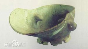 俯视呈鞋底形,火门上翘,椭方形圈脚。内壁横安三个粗壮收丁,三丁别离放于两侧反好对称,一丁放于后壁。两侧外壁安无一双半环形取两侧收丁连成一体。1977年河姆渡遗址T243出土。