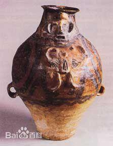 1974年青海乐都县柳湾采集。泥量红陶,侈口,口沿外翻,短颈,鼓腹,腹下部内收,平底,腹外部无对称的环耳。器反面自领至腹部无堆塑和彩绘相连系的赤身人像,似为男女两性的复合体。器身施黑彩。器后背和两侧绘方圈纹,圈内填网格状纹饰。那件彩陶壶是史前雕塑艺术的杰做。头像部门就使用了雕镂、贴塑、描绘和绘画等分歧的艺术手法。头部的各器官既放置得恰如其分,又留意表达人物的脸色,使人的面部显得泼逼真,是史前雕塑艺术的杰做,猜测此壶可能取祭祀或巫术勾当相关。