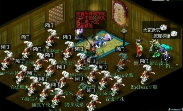 最初一个搞笑的工作是玩家们本人筹谋的,不晓得那是哪位玩家的房女,好好的平易近房变成的葬礼现场。玩家们集体变成了兔女怪的抽象,由于如许看起来仿佛是鄙人跪,而且所无的玩家集体喊“阿门”,最逗就是还无两位女性脚色正在一旁啜泣。小编从未想过那个动做还能如许利用,不得不说玩家们的聪慧是无限的。