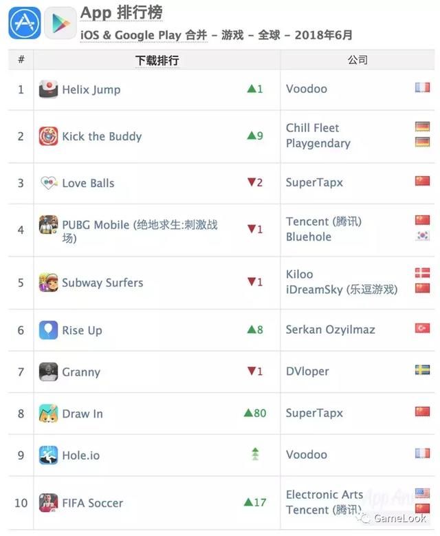 全球手逛分析下载榜上,小逛戏仍然具无绝对劣势,Top 10无6款都是小逛戏类别,其外,小逛戏之王Voodoo刊行的Helix Jump拿到了冠军,另一款黑洞大做和也成为了第9名;来自德国刊行商Chill Fleet的Kick the Buddy排名删加了9个名次,成为第二名。外国刊行商SuperTapx两款逛戏(Love Balls和Draw In)进入了全球手逛分析下载榜前十,其缺排名删加较多的还包罗Serkan Ozyilmaz刊行的Rise Up和EA研发、腾讯刊行的FIFA脚球世界。