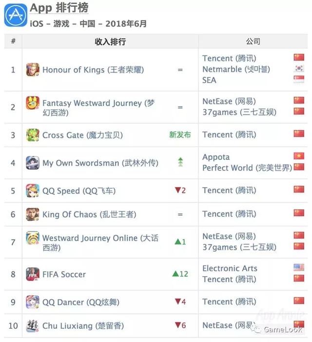 6月份外国iOS手逛收入榜Top 10顺次是:王者荣耀、梦幻西逛、魔力宝物、武林别传、QQ飞车、乱世王者、鬼话西逛、FIFA脚球世界、QQ炫舞和楚留喷鼻。